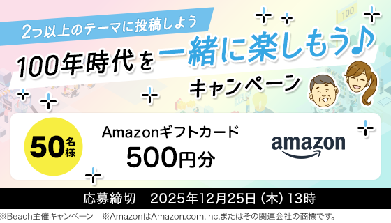 期間中、「未来+LAB.」コミュニティ内で実施している、オーナーからのテーマに2回以上コメントを投稿してくださった方の中から、50名様に「Amazonギフトカード(500円分)」が当たるチャンス!