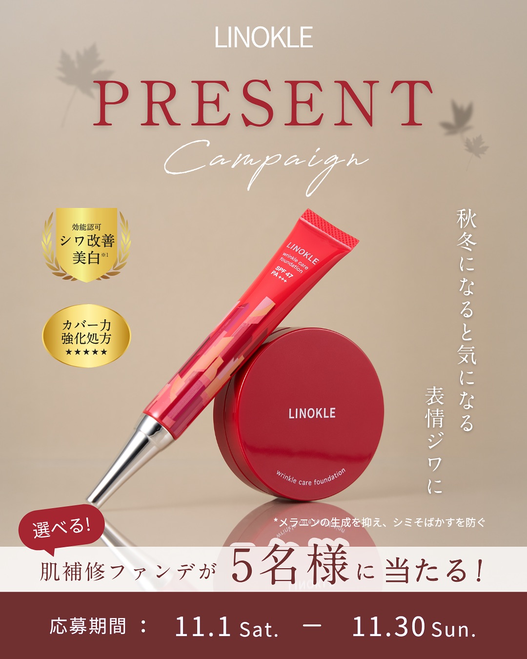 賞品:リンクルケアファンデーション、リッチカバーファンデーション(5名様)
