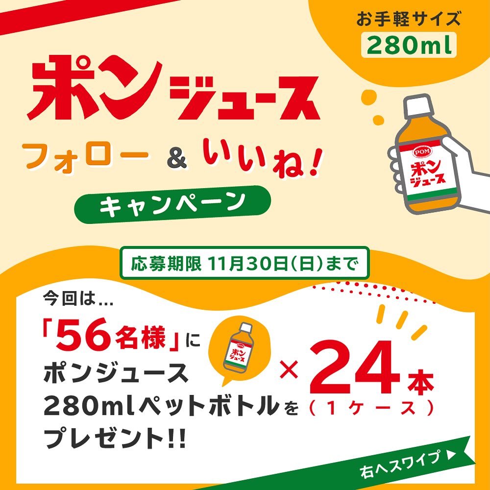 賞品:ポンジュース 280mlペット 24本入り(56名様)