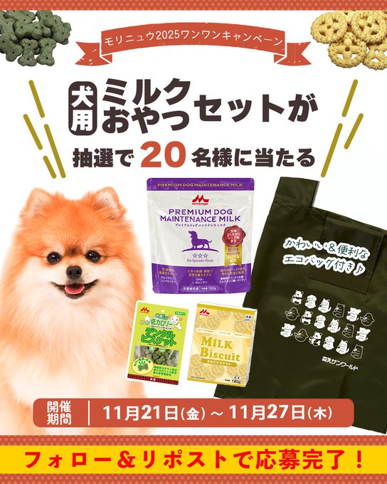 賞品:森乳サンワールドの犬用ミルク&おやつ(20名様)