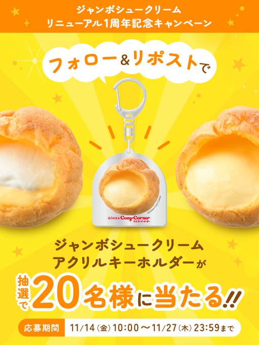 賞品:ジャンボシュークリーム アクリルキーホルダー(20名様)