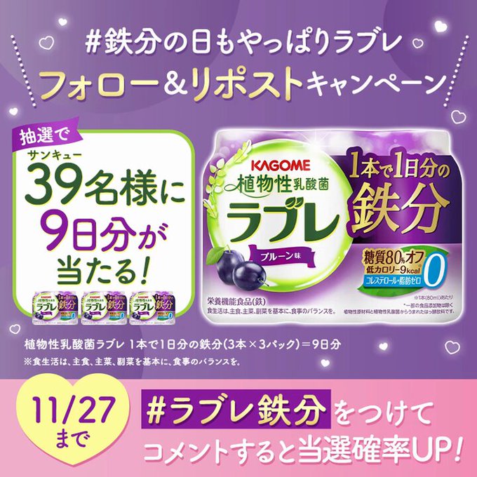 カゴメ‐#鉄分の日もやっぱりラブレ フォロー&リポストキャンペーン