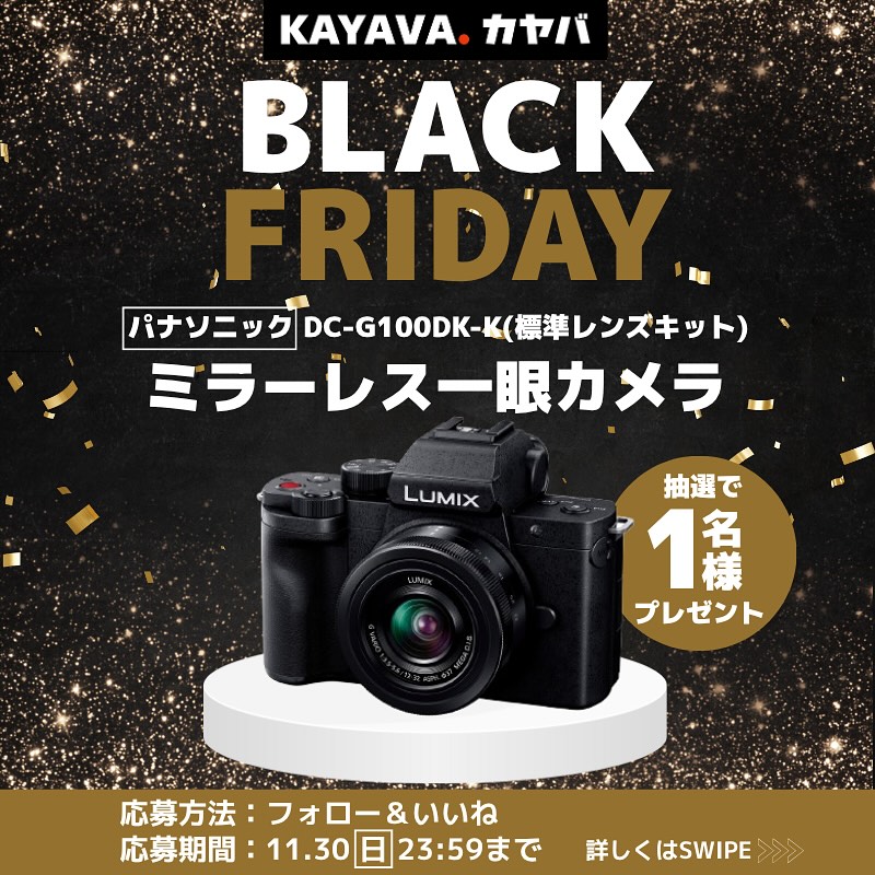 賞品:パナソニック ミラーレス一眼カメラDC-G100DK-K(標準レンズキット)(1名様)