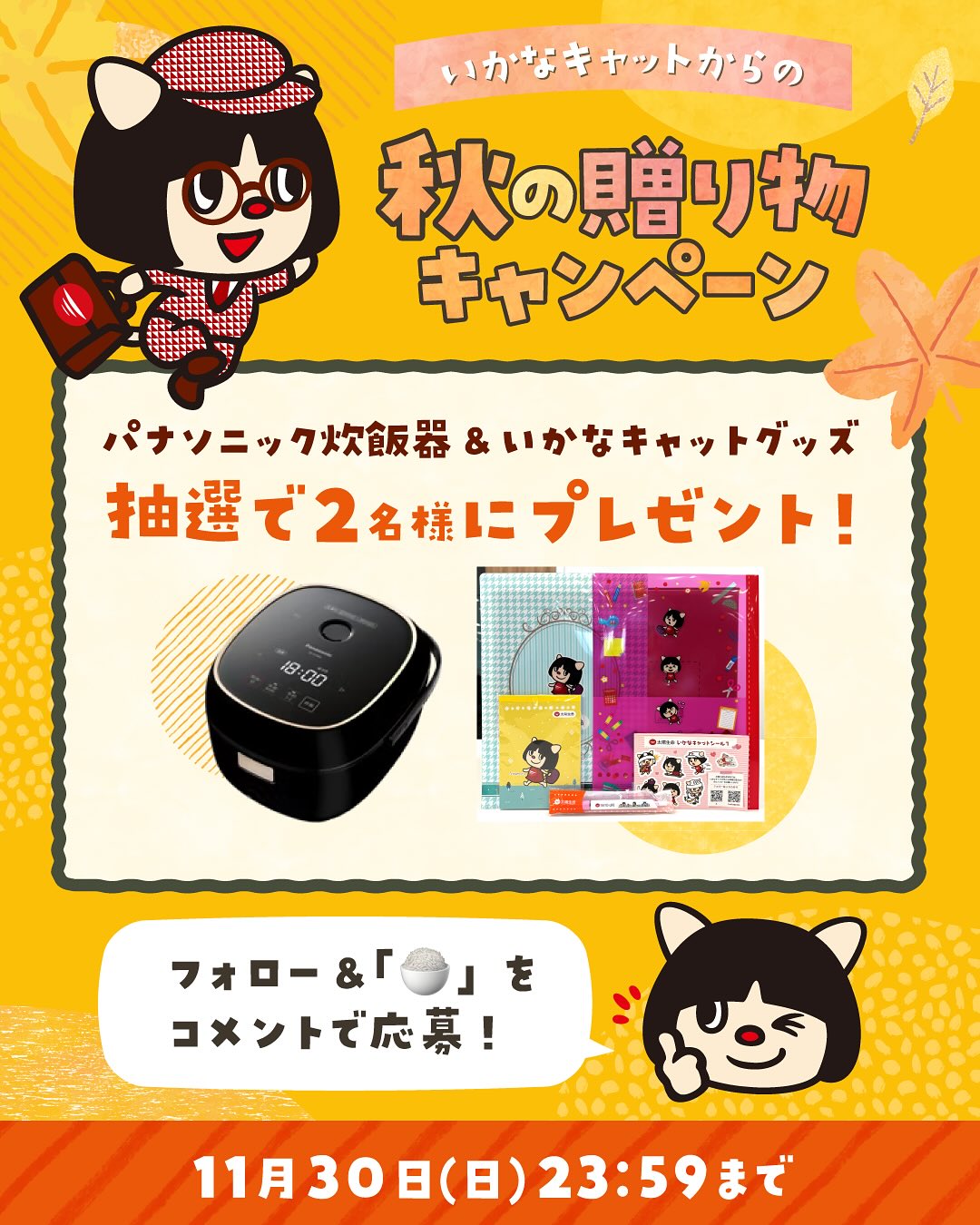 賞品:IHジャー炊飯器 SR-KT060 &いかなキャットグッズ(2名様)