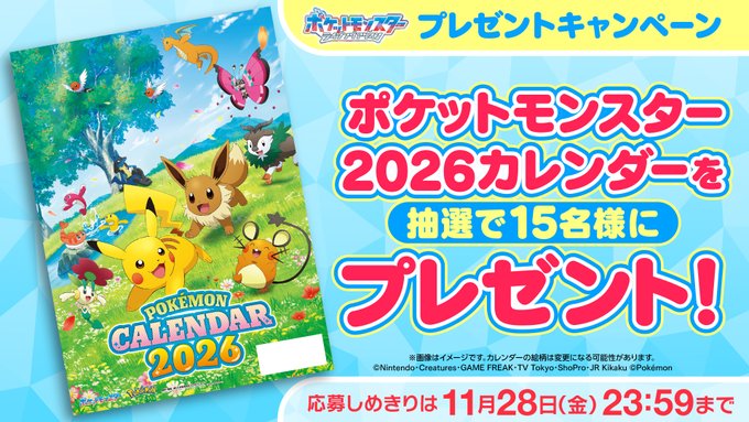 賞品:ポケットモンスター2026カレンダー(15名様)