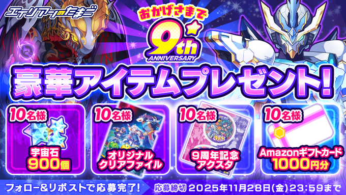 賞品:宇宙石、クリアファイル、アクスタ、Amazonギフト券1,000円分(40名様)