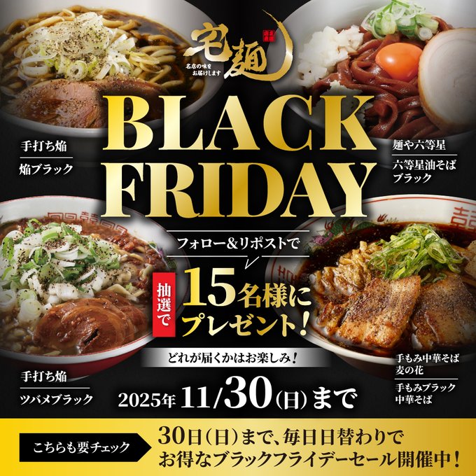 【X懸賞】「ブラック」にちなんだ名店のラーメンを15名様にプレゼント