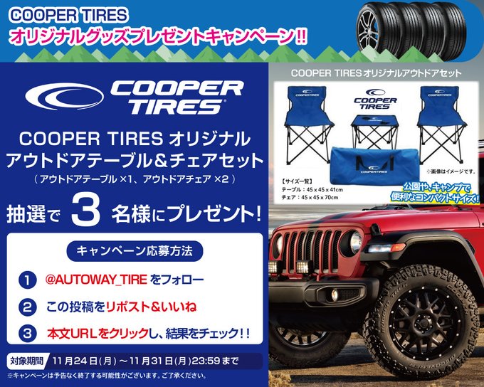 輸入タイヤ通販 AUTOWAY公式X(Twitter)アカウントをフォロー&キャンペーン対象ポストをリポストして、記載されているURLからご応募ください。