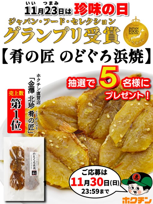賞品:肴の匠 のどぐろ浜焼(5名様)