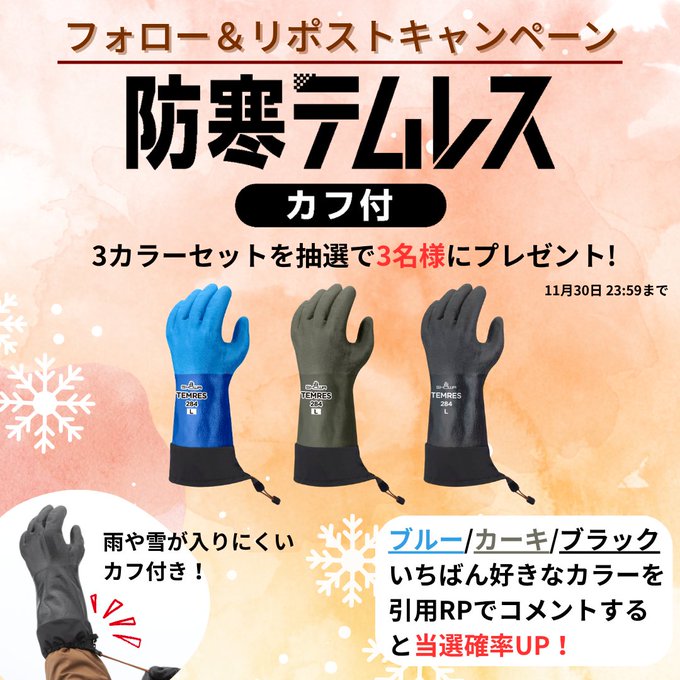 賞品:防寒テムレスカフ付 3色セット(3名様)