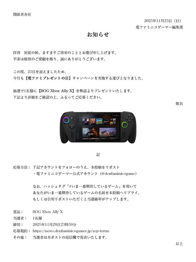 電ファミニコゲーマー‐フォロー&リポストキャンペーン