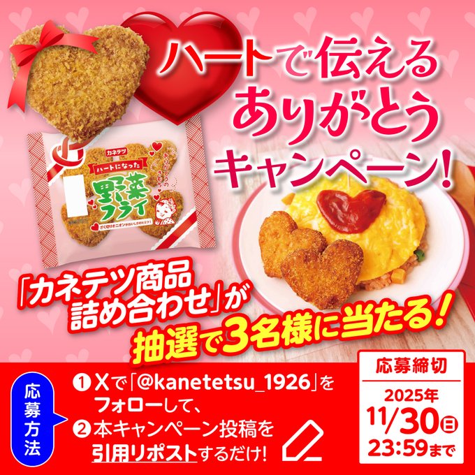 カネテツ‐『ハートになった野菜フライ』発売記念 ハートで伝えるありがとうキャンペーン