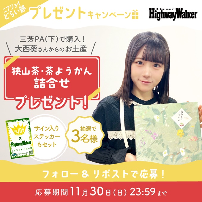 賞品:狭山茶・茶ようかん詰合せ&大西葵さんサイン入りステッカー(3名様)