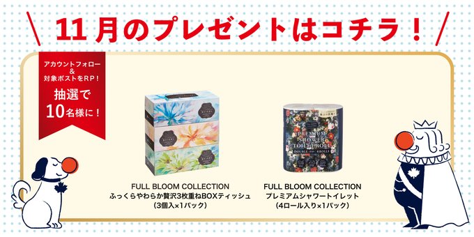 賞品:FULL BLOOM COLLECTION BOXティッシュ&プレミアムシャワートイレット(10名様)