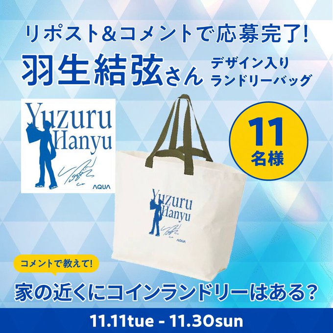 賞品:羽生結弦さんデザイン入りランドリーバッグ(11名様)