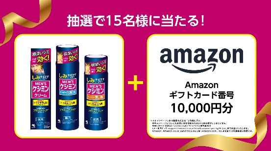 賞品:メンズケシミンシリーズ、Amazonギフト券10,000円分(15名様)
