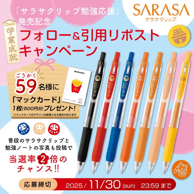 2️⃣あなたの目標や合格祈願を #サラサクリップ をつけて引用リポストしてください