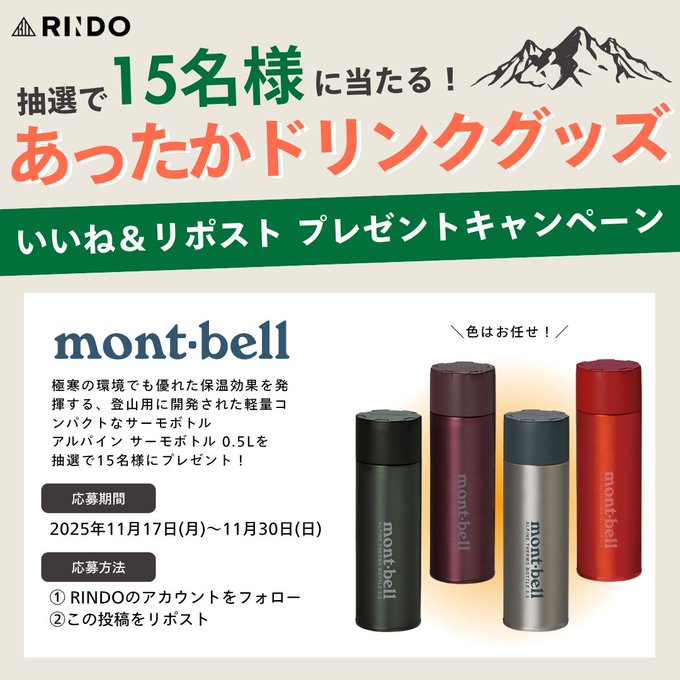 【X懸賞】モンベルのサーモボトルを15名様にプレゼント
