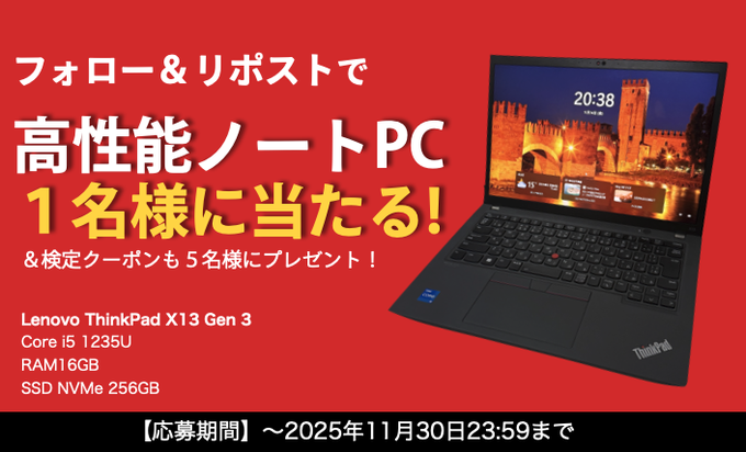 【X懸賞】中古ノートPC Thinkpad X13、検定クーポンを合計6名様にプレゼント
