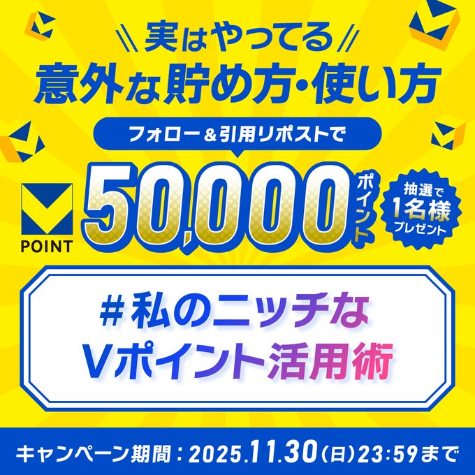 抽選で1名様にVポイント5万ポイントプレゼント🎁