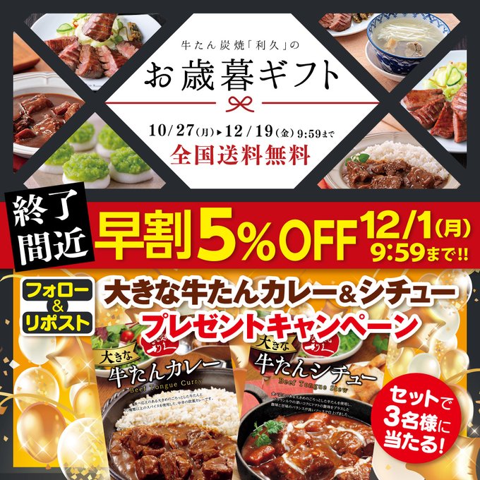 牛たん炭焼利久‐フォロー&リポストキャンペーン