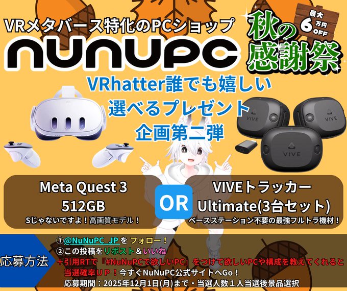 NuNuPC‐VRChatter応援!選べるプレゼント企画 第二弾