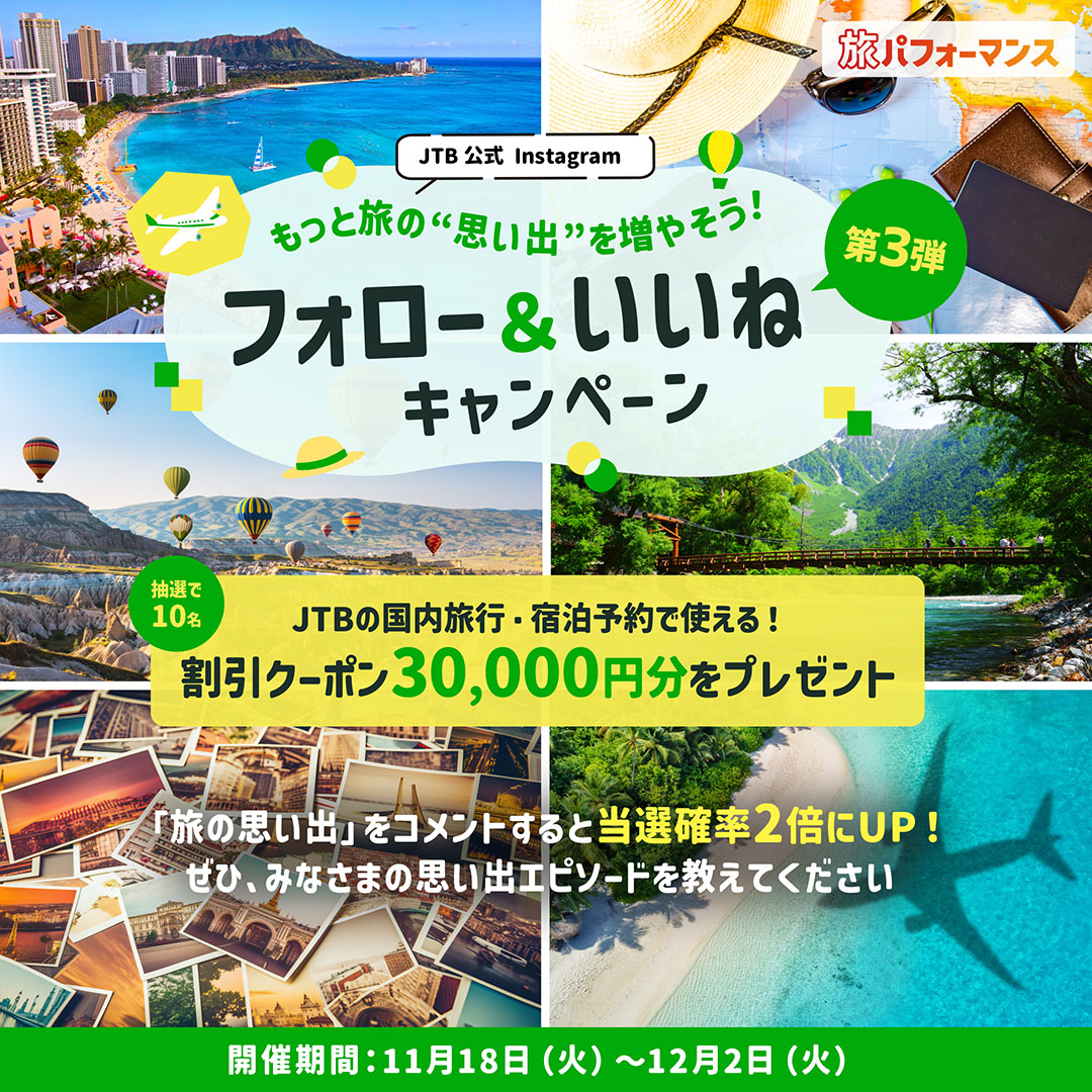 JTB‐もっと旅の”思い出”を増やそう フォロー&いいねキャンペーン