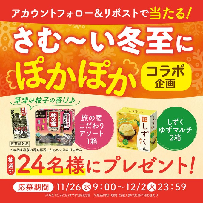 @tabinoyado_KHP @Kracie_foods をフォロー&キャンペーン対象ポストをリポストしてご応募ください。