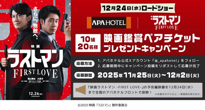 【X懸賞】映画『映画ラストマン -FIRST LOVE-』ペア鑑賞券を10組20名様にプレゼント