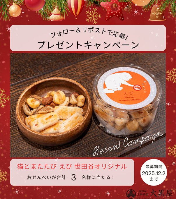 三軒茶屋おかきあられの大黒屋@創業104周年‐フォロー&リポストキャンペーン