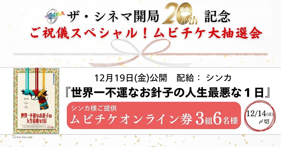 賞品:映画『世界一不運なお針子の人生最悪な1日』ムビチケオンライン券(3組6名様)