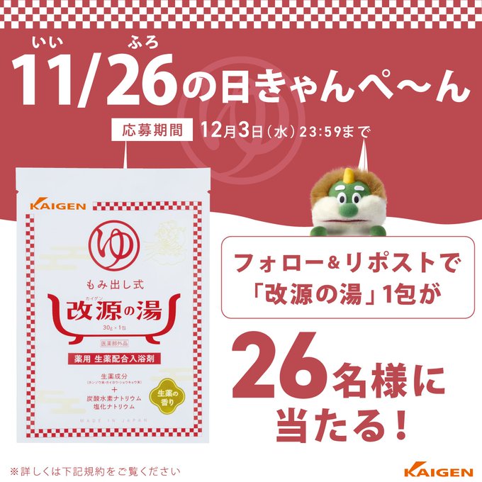 かぜ薬「改源」のカイゲンファーマ‐いい風呂の日きゃんぺ~ん