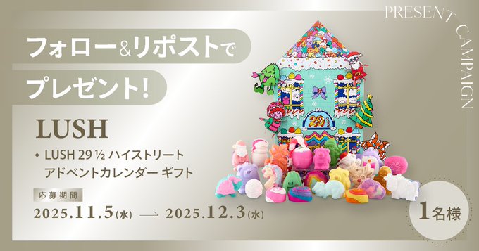 賞品:LUSH 29 ½ ハイストリート アドベントカレンダー ギフト(1名様)