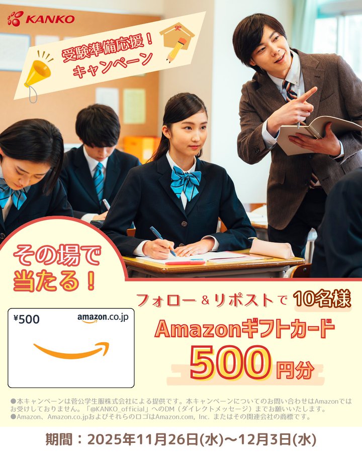 カンコー学生服公式X(Twitter)アカウントをフォロー&キャンペーン対象ポストをリポストして、記載されているURLからご応募ください。