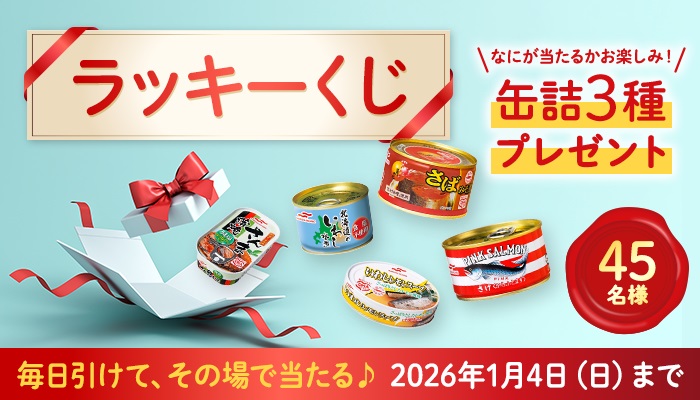 【毎日応募】マルハニチロの缶詰3種セットが45名様にその場で当たる! 2025.12.01Oishiine!!‐ラッキーくじ 賞品:缶詰3種セット(45名様) 締切:2026年1月4日(日)ラッキーくじの参加には、50ポイントが必要です。※詳細はキャンペーンページにてご確認ください。応募はこちらから