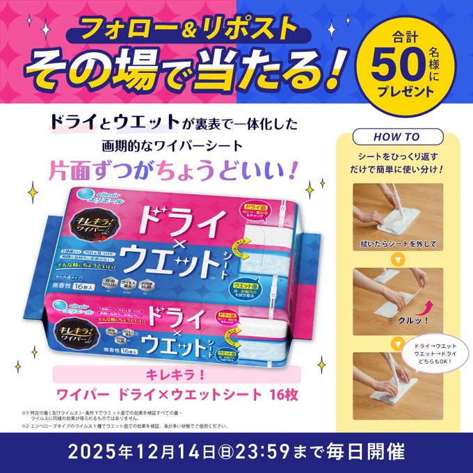 賞品:キレキラ ! ワイパー ドライ×ウエットシート(50名様)