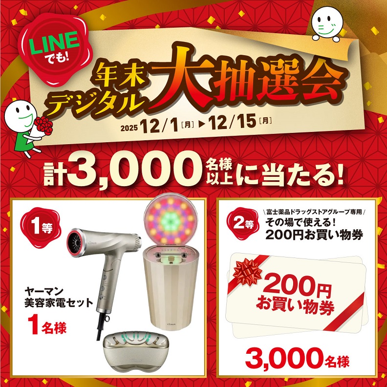 富士薬品ドラッグストアグループLINE公式アカウントを友だち追加&キャンペーンページからご応募ください。