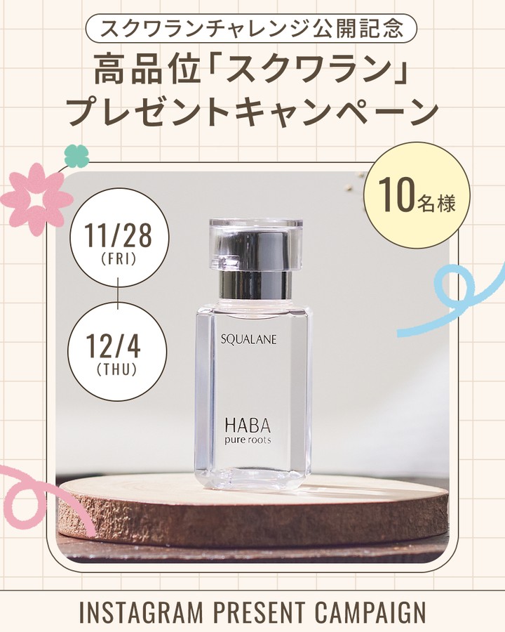 賞品:高品位「スクワラン」30mL(10名様)