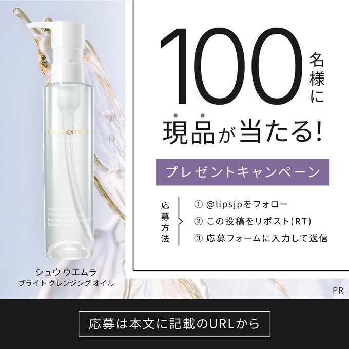 賞品:シュウ ウエムラ「ブライト クレンジング オイル」(100名様)