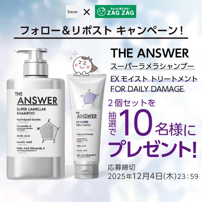 賞品:THE ANSWER シャンプー/トリートメント(10名様)