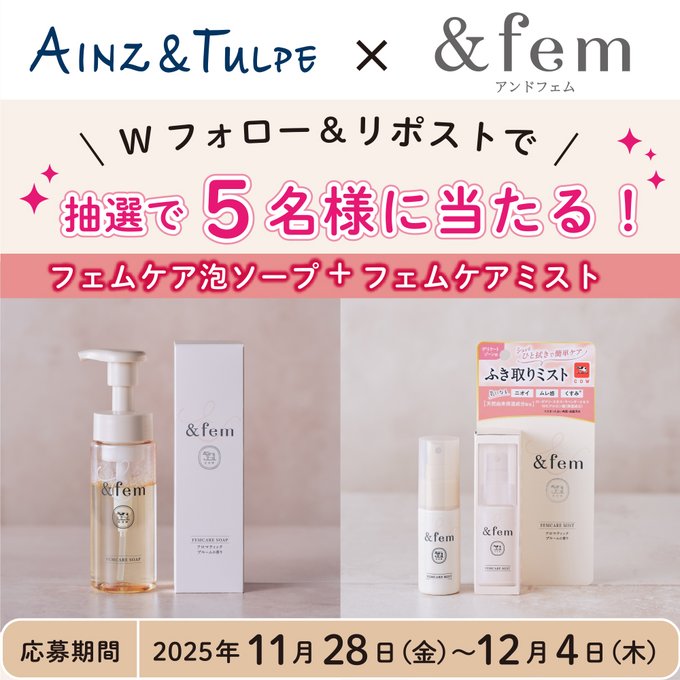 @ainztulpeと@andfem_officialをフォロー&キャンペーン対象ポストをリポストしてご応募ください。