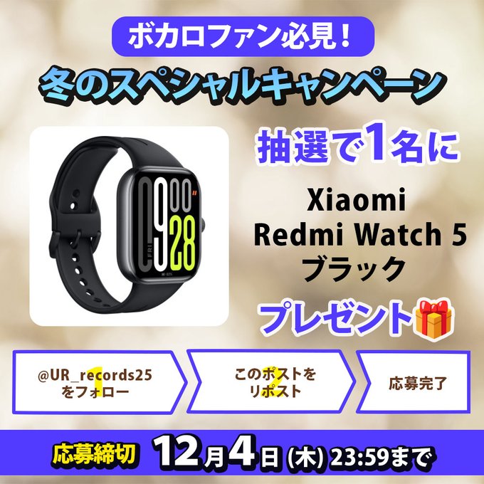 賞品:Xiaomi Redmi Watch 5(1名様)