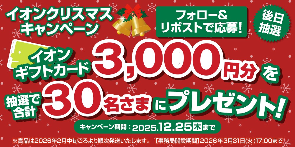 イオン公式X(Twitter)アカウントをフォロー&キャンペーン対象ポストをリポストしてご応募ください。