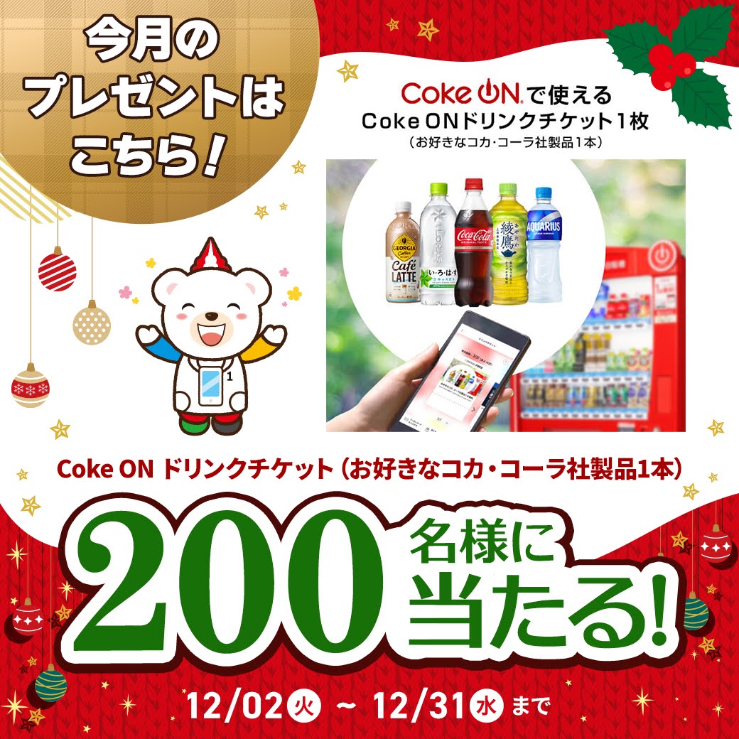 賞品:Coke ON ドリンクチケット(お好きなコカ・コーラ社製品1本)(200名様)