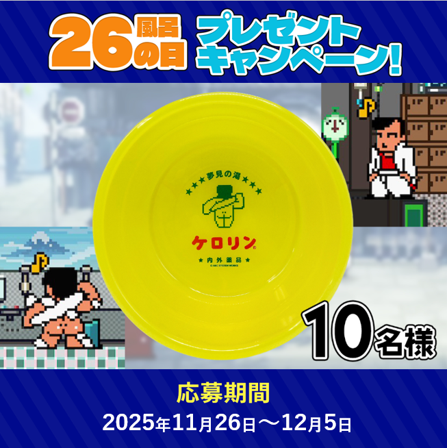 賞品:熱血硬派くにおくん×ケロリン桶(10名様)