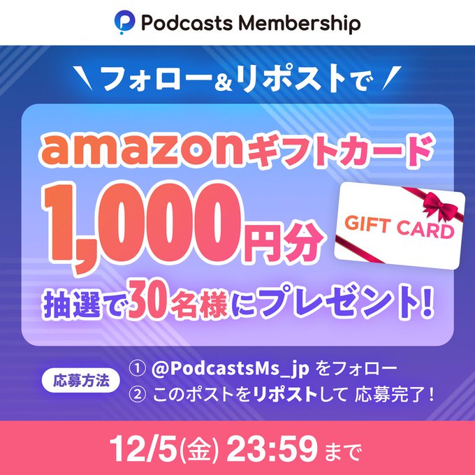 ポッドキャストメンバーシップ‐フォロー&リポストキャンペーン