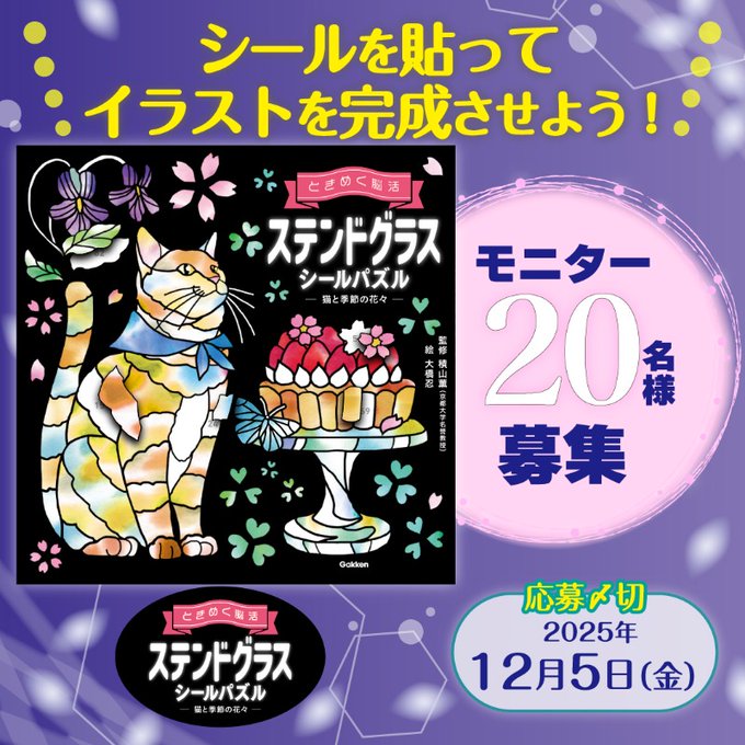 Gakken 広報‐『ときめく脳活 ステンドグラスシールパズル 猫と季節の花々』モニター計20名様募集