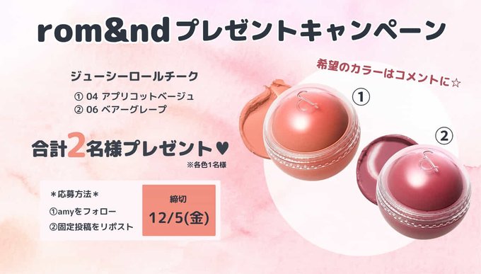賞品:ロムアンド ジューシーロールチーク(2名様)