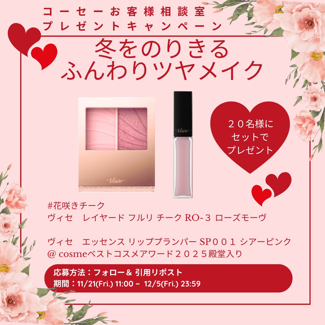 賞品:ヴィセ レイヤードフルリチーク (RO-3 ローズモーヴ)&ヴィセ エッセンスリッププランパー (SP001)(20名様)