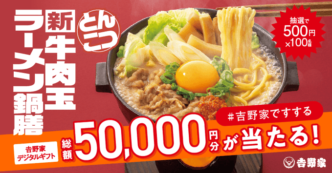 賞品:吉野家デジタル500円分(100名様)